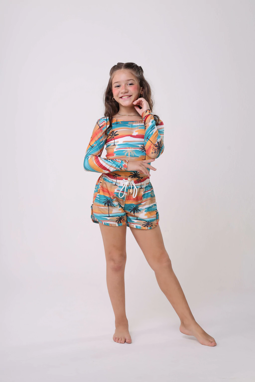Perfeito para a praia ou para um passeio ao ar livre, o Tal Filha Short Pôr do Sol oferece conforto e liberdade de movimento.